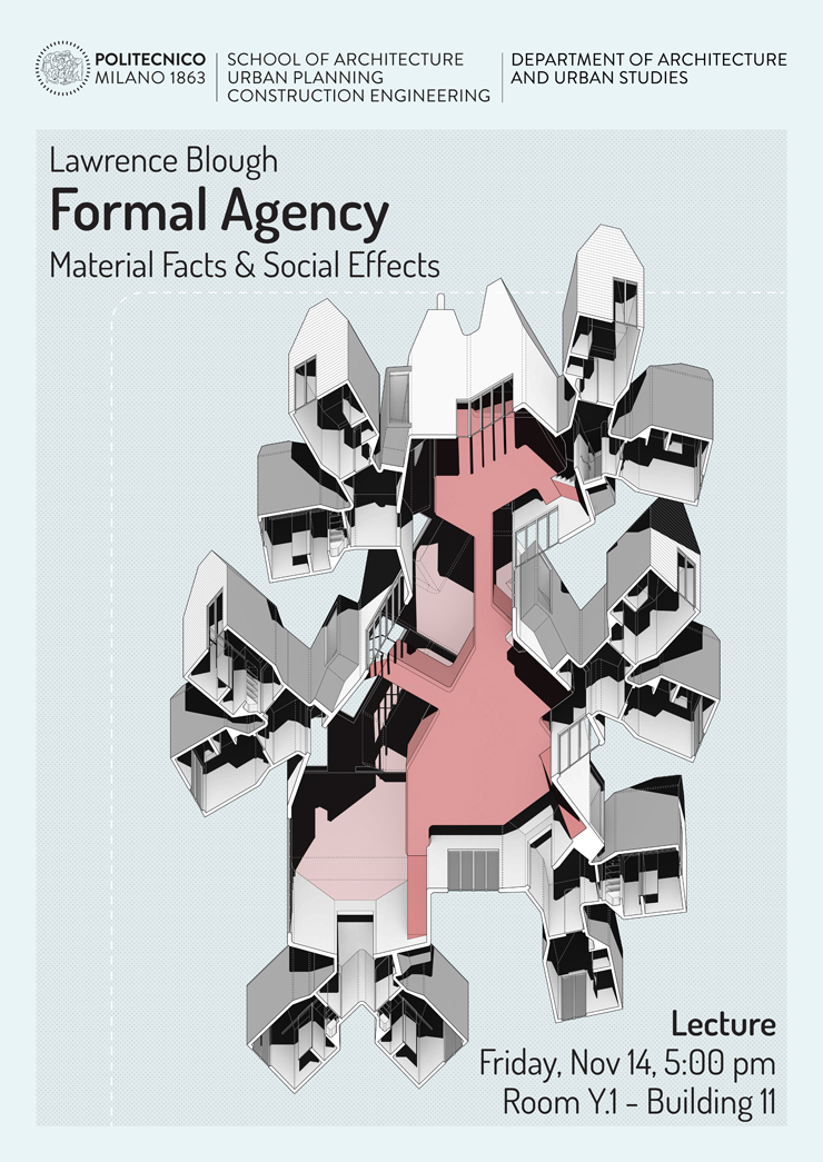 Visiting Research Scholar Lecture: “Formal Agency: Material Facts & Social Effects.” Politecnico di Milano, Department of Architecture and Urban Studies